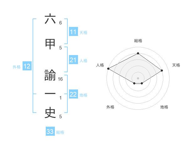 六甲 諭一史さんの総格は33画の4点!