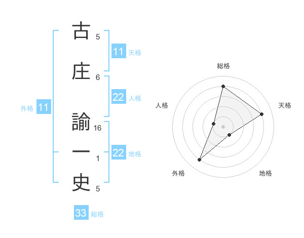 古庄 諭一史さんを姓名の画数から五運を鑑定