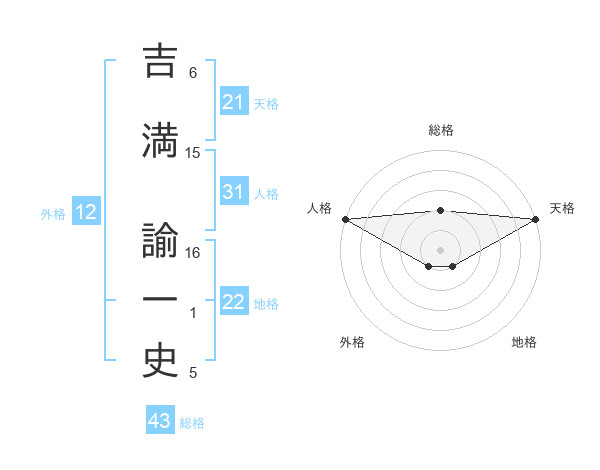 吉満 諭一史さんの天格は21画の5点!