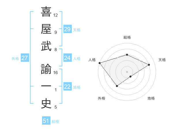 喜屋武 諭一史さんを姓名の画数から五運を鑑定