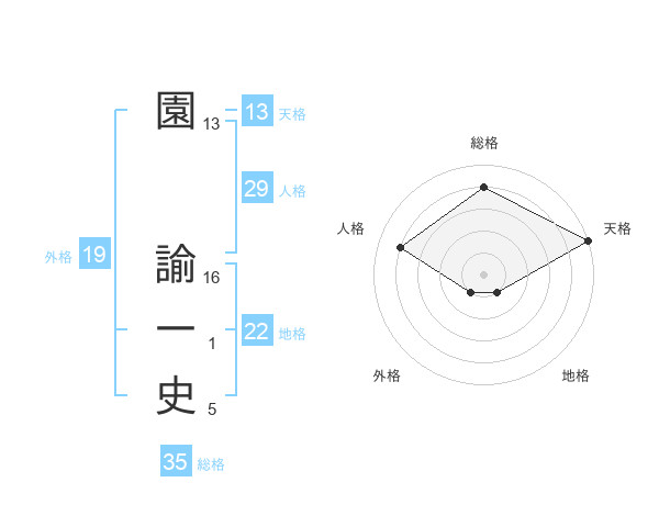 園 諭一史さんの総格は35画の4点!