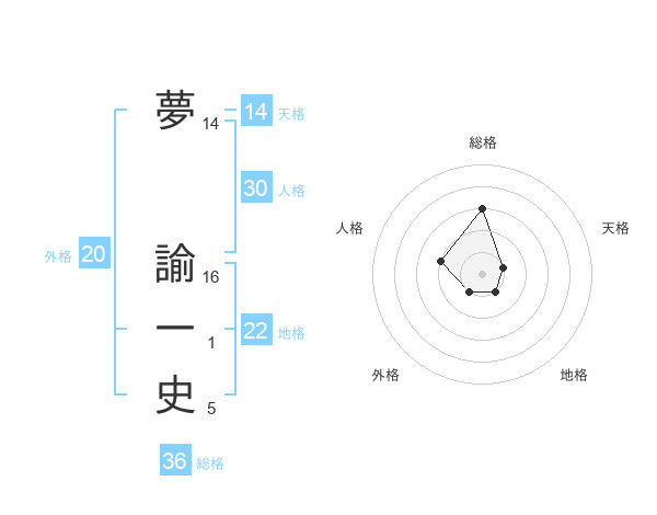 夢 諭一史さんの外格は20画の1点!