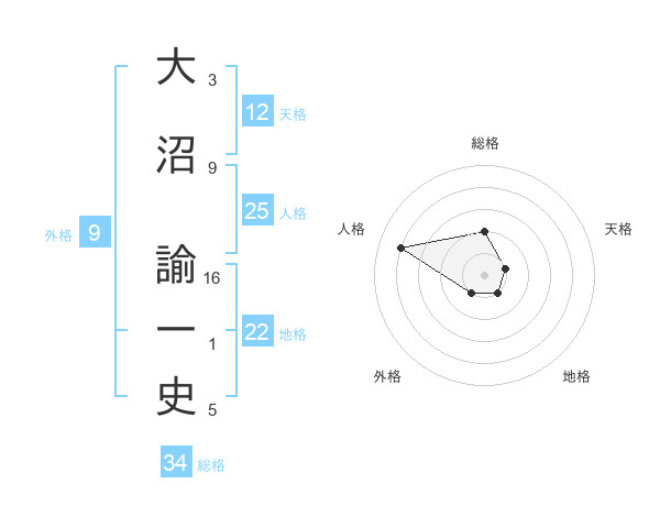 大沼 諭一史さんを姓名の画数から五運を鑑定