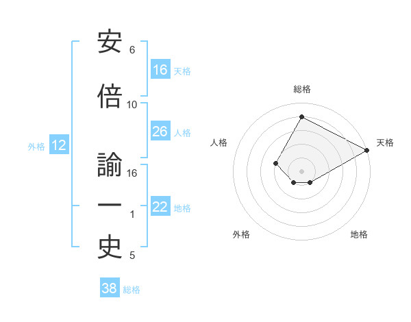 安倍 諭一史さんの天格は16画の5点!