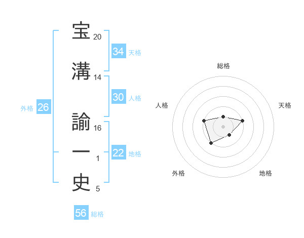 宝溝 諭一史さんを姓名の画数から五運を鑑定