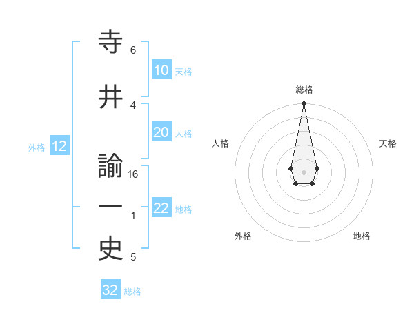 寺井 諭一史さんの総格は32画の5点!