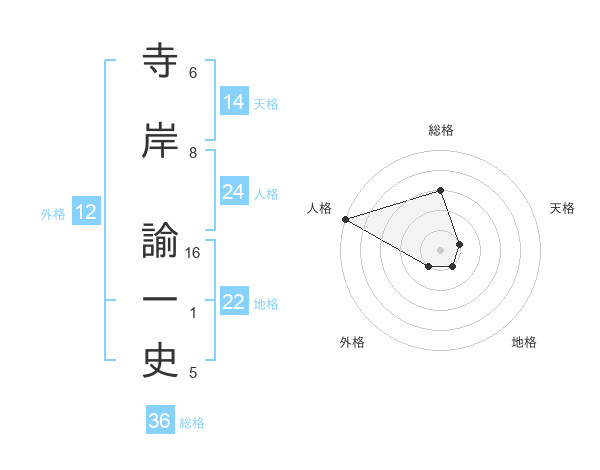 寺岸 諭一史さんを姓名の画数から五運を鑑定