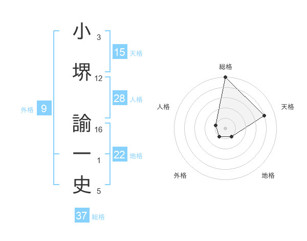 小堺 諭一史さんを姓名の画数から五運を鑑定