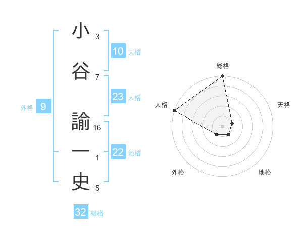小谷 諭一史さんの総格は32画の5点!