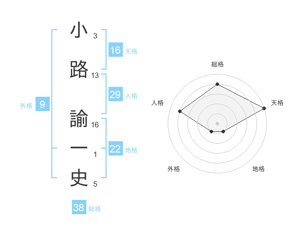 小路 諭一史さんの天格は16画の5点!