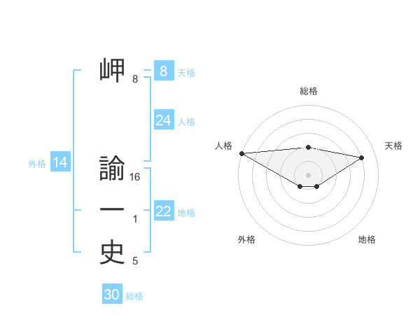 岬 諭一史さんの総格は30画の2点!