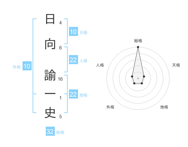 日向 諭一史さんを姓名の画数から五運を鑑定