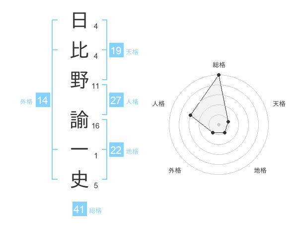 日比野 諭一史さんを姓名の画数から五運を鑑定