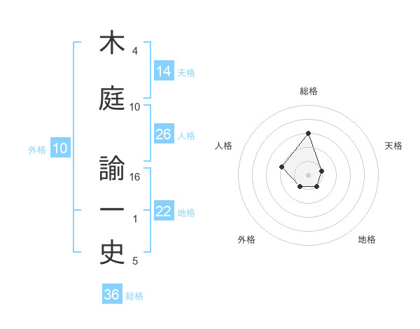 木庭 諭一史さんを姓名の画数から五運を鑑定