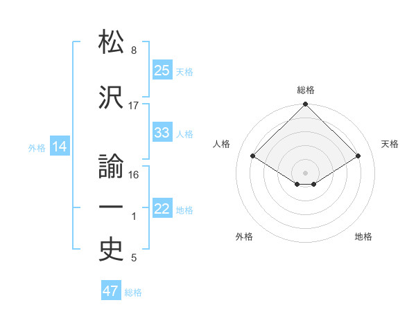 松沢 諭一史さんの総格は47画の5点!