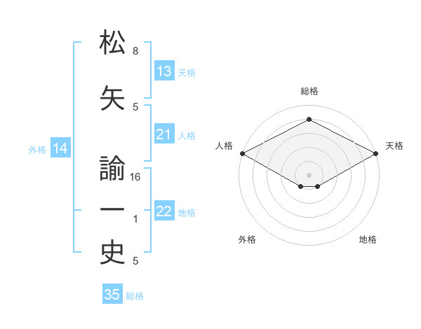 松矢 諭一史さんを姓名の画数から五運を鑑定