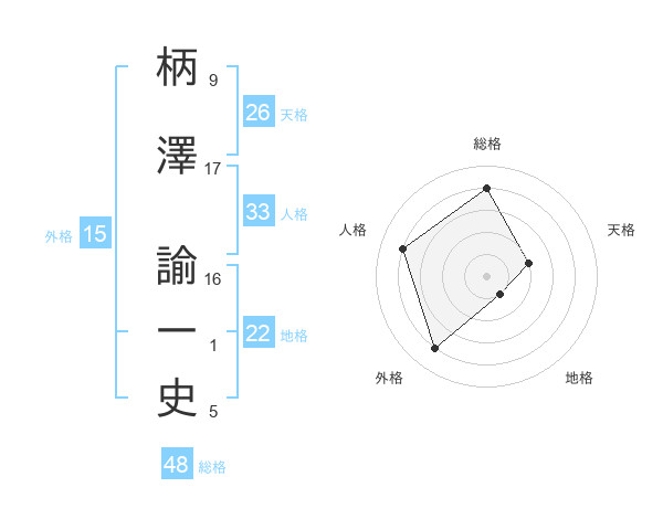 柄澤 諭一史さんを姓名の画数から五運を鑑定