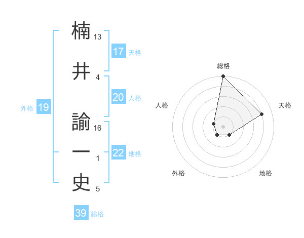 楠井 諭一史さんを姓名の画数から五運を鑑定
