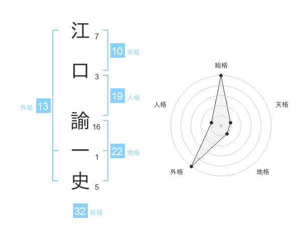 江口 諭一史さんの総格は32画の5点!