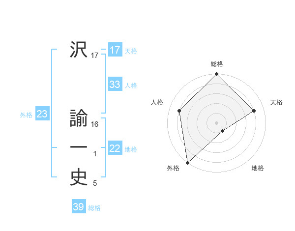沢 諭一史さんの総格は39画の5点!