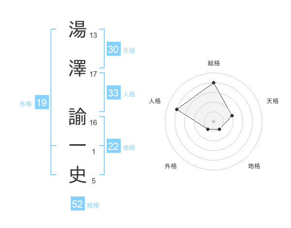 湯澤 諭一史さんの総格は52画の4点!