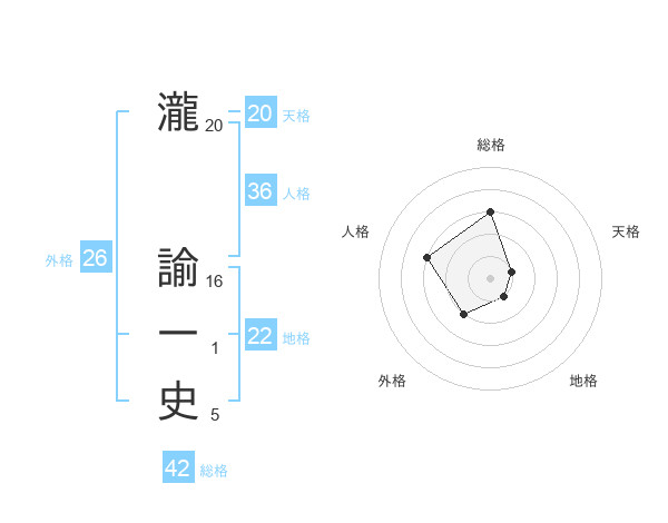 瀧 諭一史さんの地格は22画の1点!