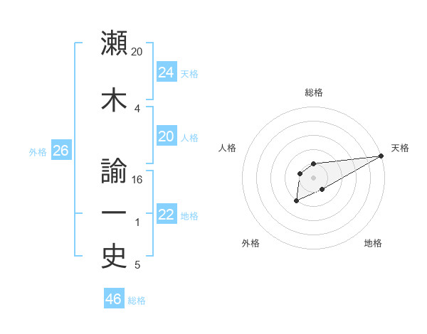 瀬木 諭一史さんの天格は24画の5点!
