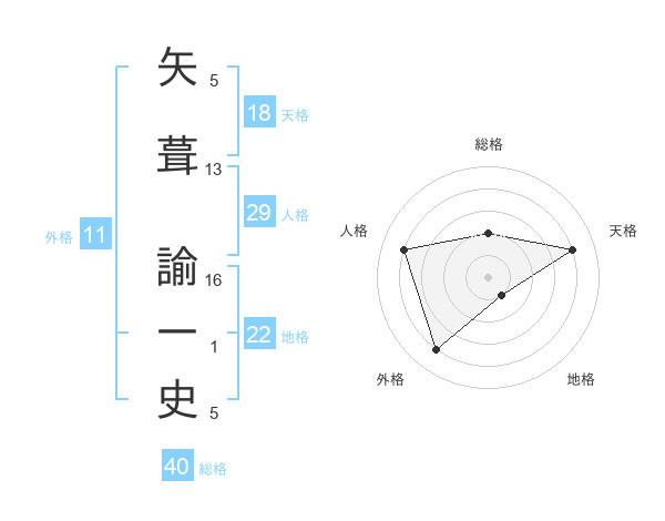矢葺 諭一史さんを姓名の画数から五運を鑑定