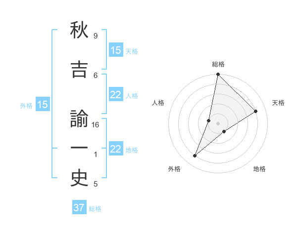 秋吉 諭一史さんを姓名の画数から五運を鑑定