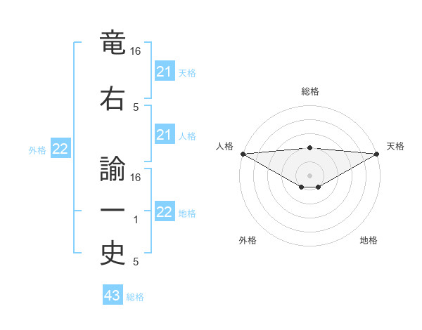 竜右 諭一史さんを姓名の画数から五運を鑑定