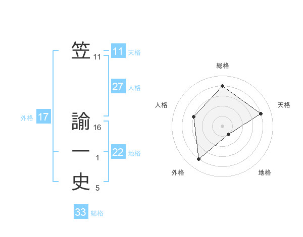笠 諭一史さんを姓名の画数から五運を鑑定