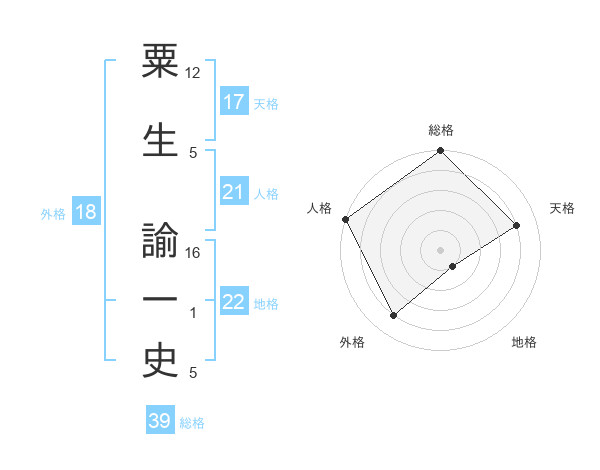 粟生 諭一史さんの総格は39画の5点!