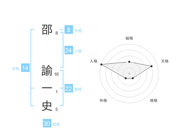邵 諭一史さんの総格は30画の2点!