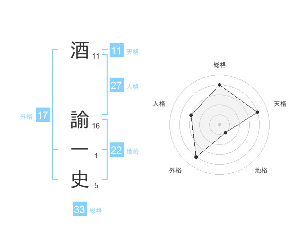 酒 諭一史さんを姓名の画数から五運を鑑定