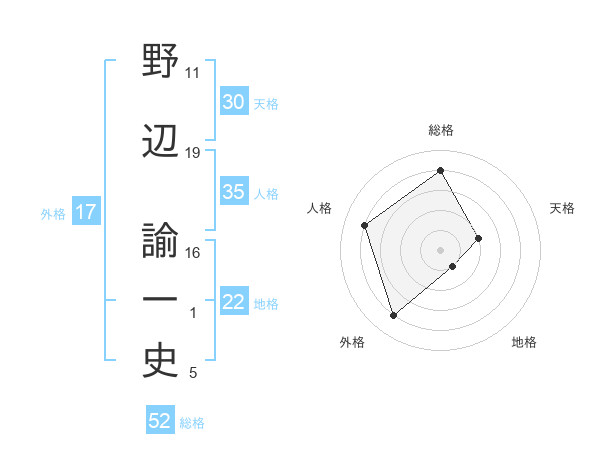 野辺 諭一史さんを姓名の画数から五運を鑑定