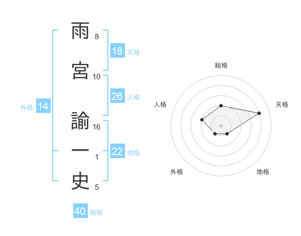 雨宮 諭一史さんを姓名の画数から五運を鑑定