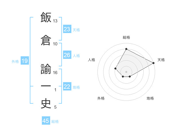 飯倉 諭一史さんの総格は45画の4点!