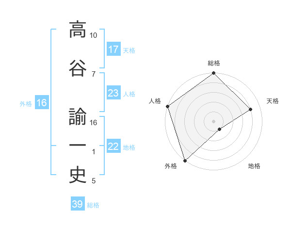 高谷 諭一史さんを姓名の画数から五運を鑑定