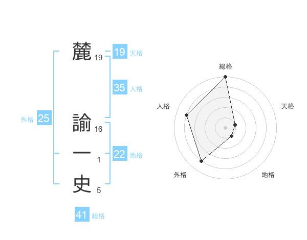 麓 諭一史さんを姓名の画数から五運を鑑定