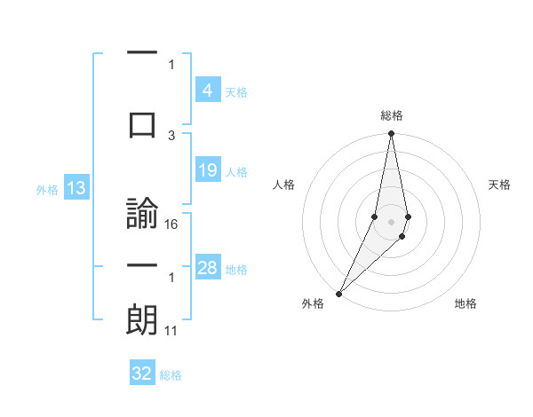 一口 諭一朗さんの外格は13画の5点!