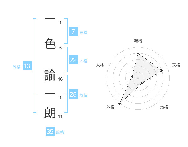 一色 諭一朗さんを姓名の画数から五運を鑑定
