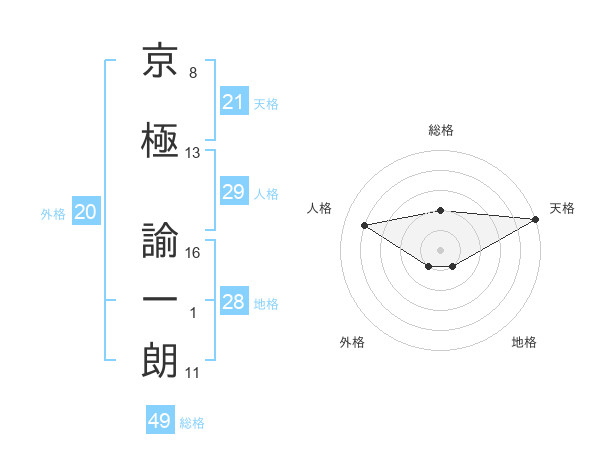 京極 諭一朗さんを姓名の画数から五運を鑑定