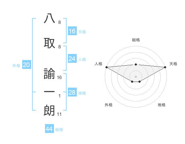 八取 諭一朗さんの総格は44画の2点!