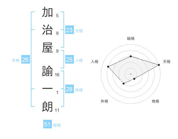加治屋 諭一朗さんを姓名の画数から五運を鑑定