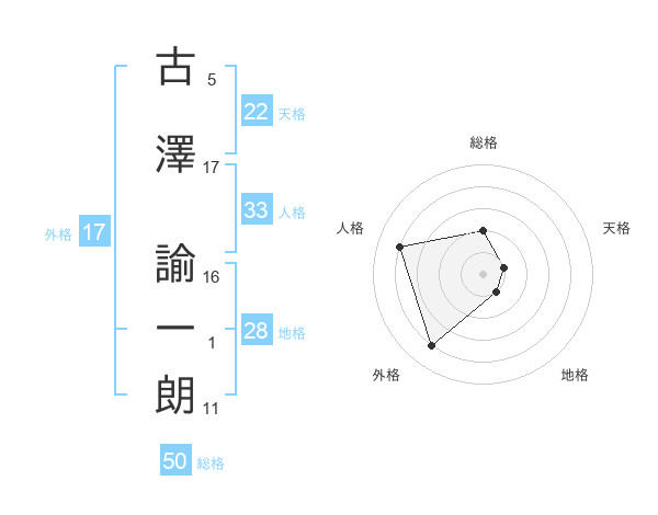 古澤 諭一朗さんの総格は50画の2点!