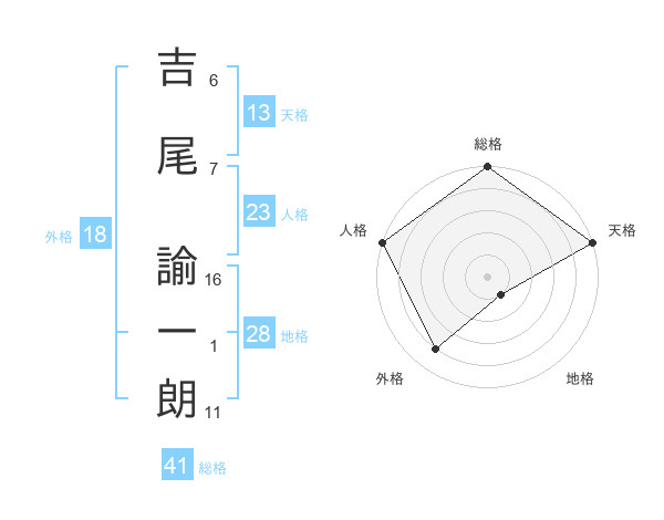 吉尾 諭一朗さんを姓名の画数から五運を鑑定