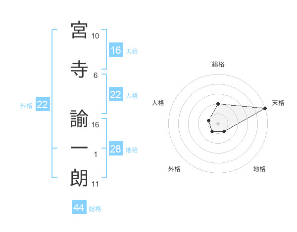 宮寺 諭一朗さんの天格は16画の5点!