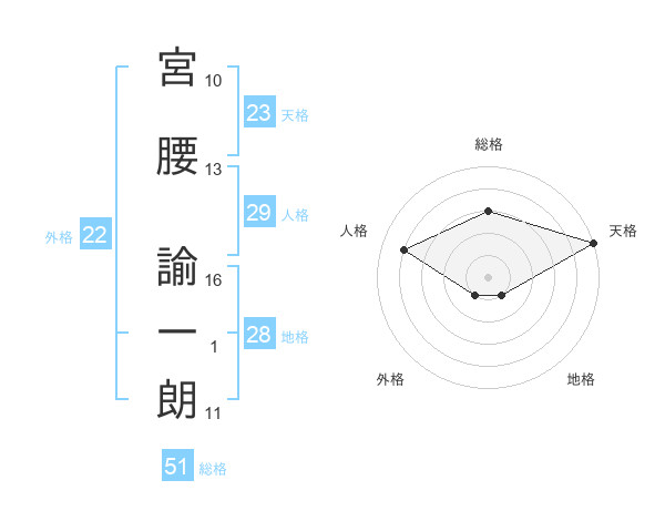 宮腰 諭一朗さんを姓名の画数から五運を鑑定