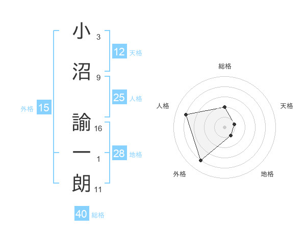 小沼 諭一朗さんの地格は28画の1点!