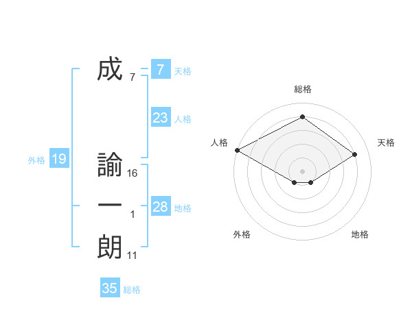 成 諭一朗さんの総格は35画の4点!